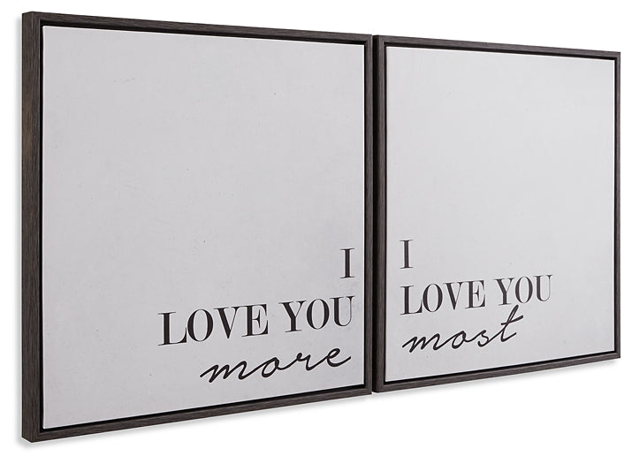 Send an important message with this graphic set of two gallery-wrapped canvases on your walls. Whether this is for your bedroom, your child’s room or the family room, everyone will feel the love you share with this typographical art.