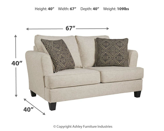 Whether you’re creating a warm and cozy modern farmhouse or cool and contemporary escape, this loveseat is sure to look right at home. High armrests with a rounded track design provide a chic, sheltering effect. Light linen-tone upholstery is a beauty to behold.