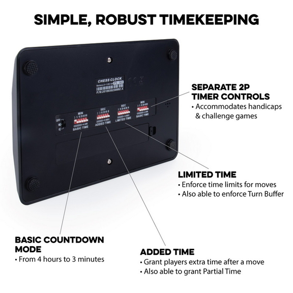 Brybelly's Digital Chess Clock has multiple features and settings like Countdown Mode, Time Limiting, adding time to either player's clock, and even a 12 hour clock function for when your games are over. It's great for more than just Chess too! Use it to keep track of turns in Scrabble, Go, Shogi, and any other competitive board game that you want to keep idle time down in.