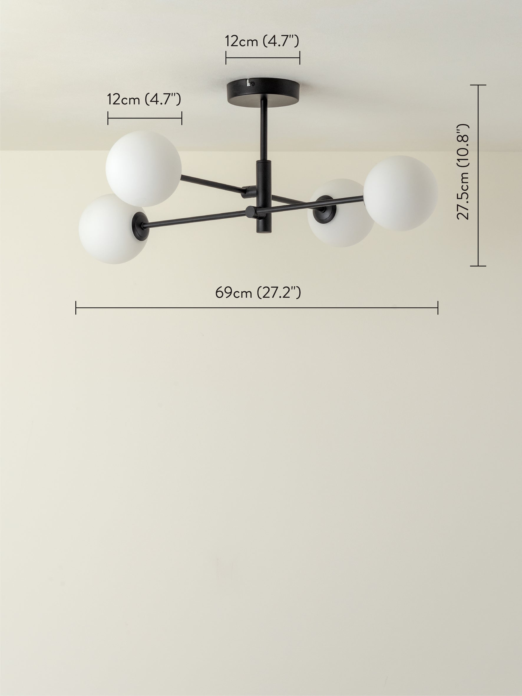 Elegance, style, sophistication. The Chelso 4 light pendant will get all the compliments no matter where you hang it. The smooth opal globes, refined matt black arms and delicate structure make for a pretty beautiful light.