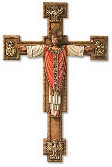 This collection of "Val Gardena"crucifixes is named for the regionin Italy where the world's best carversand painters of religious statuary plytheir trade. Honoring this traditionof excellence, these handsome piecesfrom Milagros offer quality andvariety at a great value. -- Resin -- 6.125" W x 13" H