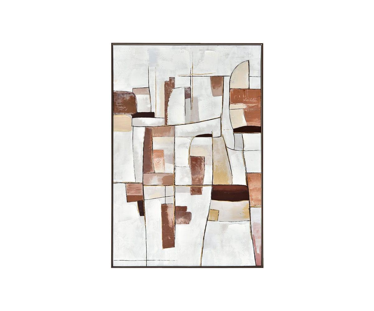 An homage to the simple geometry of cubism, the Cubist Sands II Oil Painting depicts a wide array of abstract blocks artistically spread across this eye-catching work of art. This oil painting is built around abstract lines that showcase earthy browns, tans, terracotta and cream. Simply layer this piece with other neutral hues and bold lines for a contemporary look, or pair with the classic curves and arches of mid-century styled designs to cement your mid-century look.