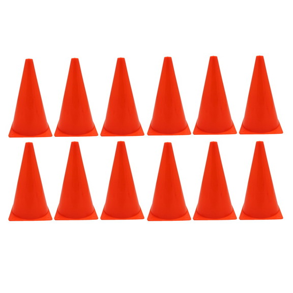 Create an obstacle course, mark boundaries, or practice agility with the Hi-Visibility Fluorescent Poly Cone. These Hi-Visibility Fluorescent Poly Cones are a bright fluorescent orange. Each cone measures 9 inches. Sold as a pack of 12 cones.