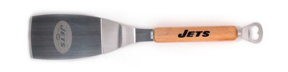 Show off your grilling skills with this large wood handled spatula. Your favorite team name is engraved in the handle and the stainless steel spatula is laser etched with the team logo. The handle also has a bottle opener at the end.