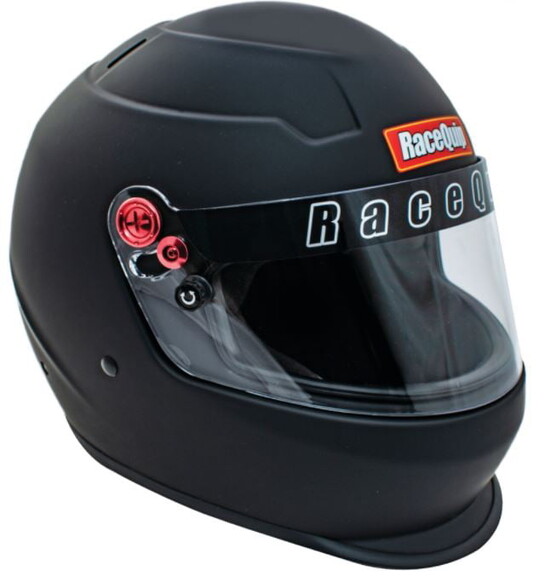 This RaceQuip PRO20 full face large Helmet is made of fiber reinforced polymer shell with polystyrene liner and comes in flat black.