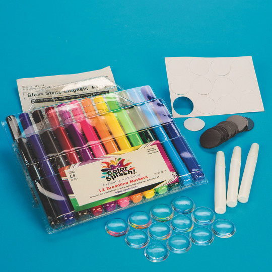 Only the finest art is encased - and these mini masterpieces are no exception! 1" clear acrylic stones with flat backs magnify kids' designs. Includes paper backs, magnets, markers, glue, and instructions.